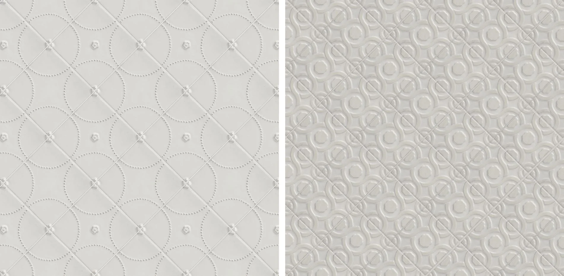 Each of our decorative tiles pair beautifully with several of our moldings. To help you visualize the complete design, we have provided images of our most popular pairings.